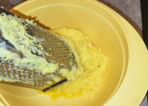 С картошки отжимаем лишнюю жидкость и соединяем ее с фаршем.
